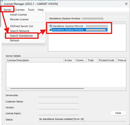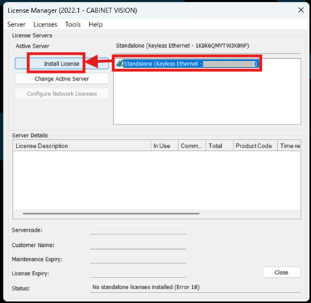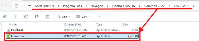 Open the Licence Manager. You will find it in a folder location similar to "C:\Program Files\Hexagon\CABINET VISION\Common 2022\CLS 2022.1\licenses.exe"