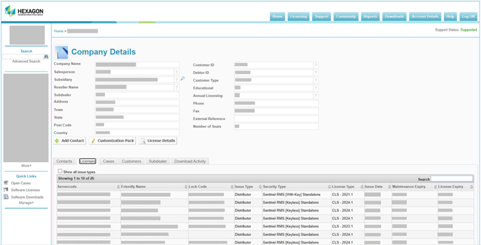 Open Hexagon Customer Portal Licence Details: In your web browser, open the Hexagon website: https://customers.ps.hexagonmi.com/ and Log In to your account.