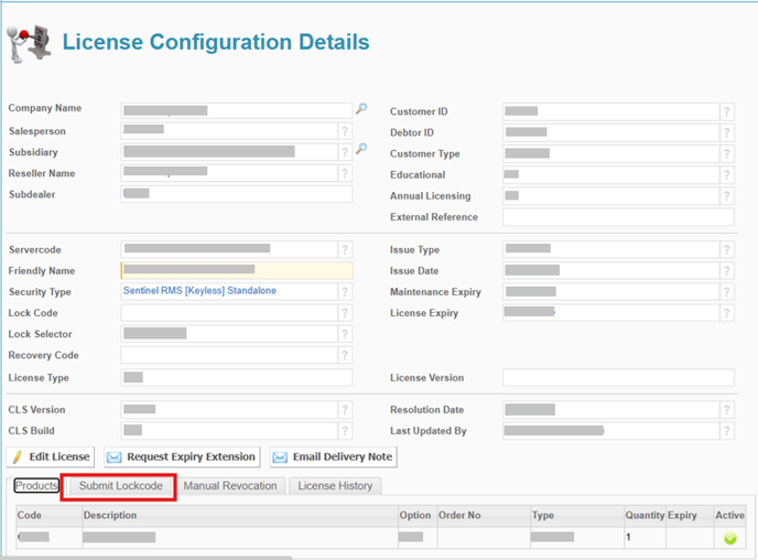 Step 4: your Company Details page will include details about your company including Licences. Down the bottom there are tabs, select the Licences tab and find the licence you would like to install. Click on it to open these details in a new page. We will need to "Submit Lockcode", this option is found in the tabs near the bottom of the page