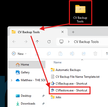 If you have had CABINET VISION installed by one of the Planit Team you may find the icon for CV Backup Tools folder on you desktop, double click to open and inside you will find the CVRestore.exe