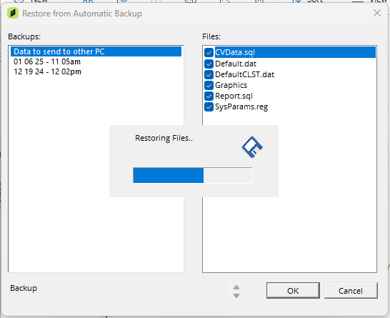 When Restoring Files has finished, open up CABINET VISION and check that everything you need is there.