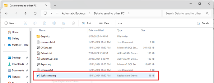 If your system parameters are missing, close CABINET VISION, open up the Folder of the back up you have just restored and look for the SysParams.reg file.