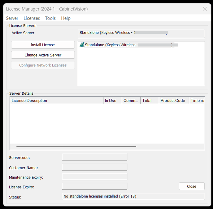 Ensure that your License is available. You can check the status of your companies CABINET VISION Licenses at the Hexagon Customer Portal: https://customers.ps.hexagonmi.com/Site/Licencing/Config.aspx