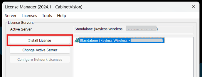 If you are just renewing the License, you can simply click on your License to select it, and then click "Install License"