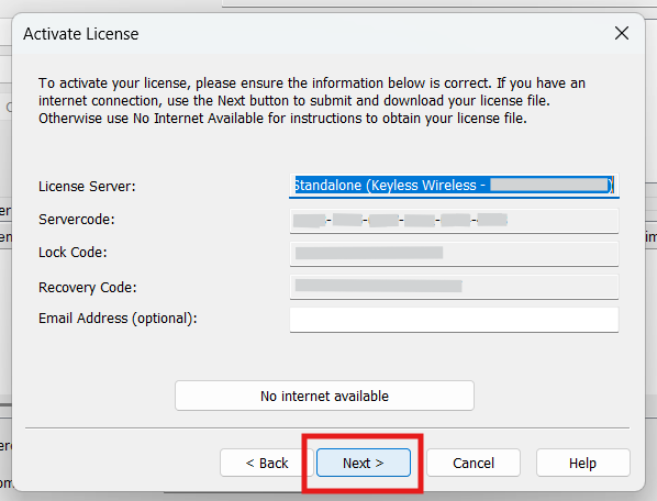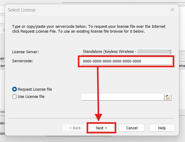 Enter your 24 digit Servercode in the space provided and click "Next >"