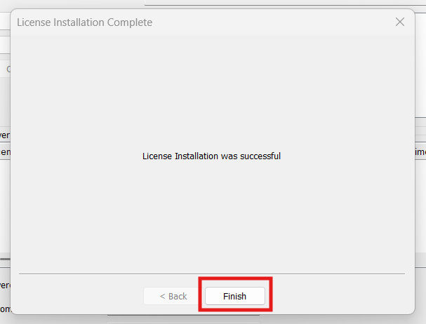 Click Finish to end the process. Your License is successfully installed with any new details.